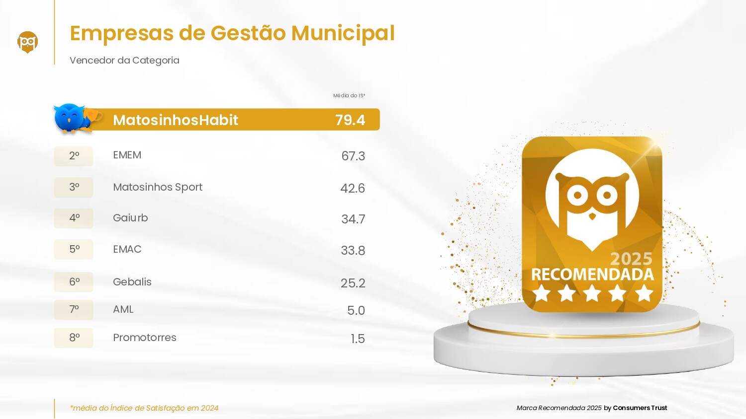 Ser eleita Marca Recomendada 2025 traduz-se no reconhecimento da «elevada performance da MatosinhosHabit ao longo de 2024», na plataforma Portal da Queixa, com base na relação de proximidade com os utentes e na prioridade dada à sua satisfação e à qualidade do atendimento.