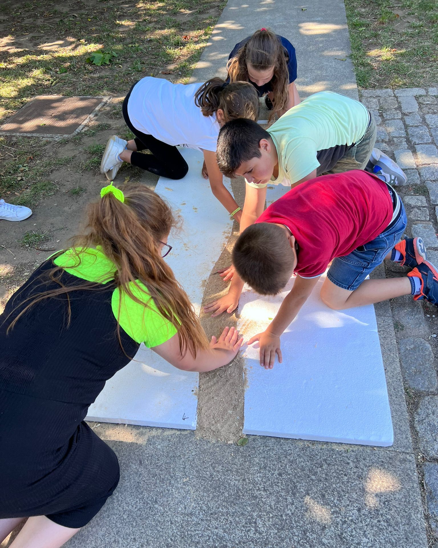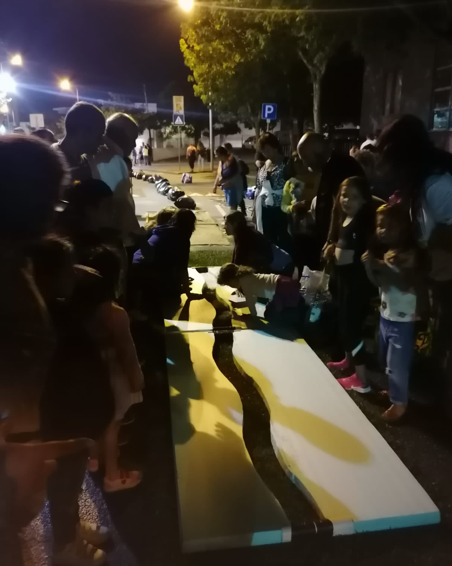 Depois de uma semana de trabalho de preparação de todos os elementos/materiais que iriam compor a porção de tapete, cerca de 50 moradores, participaram na sua construção, no passado sábado.