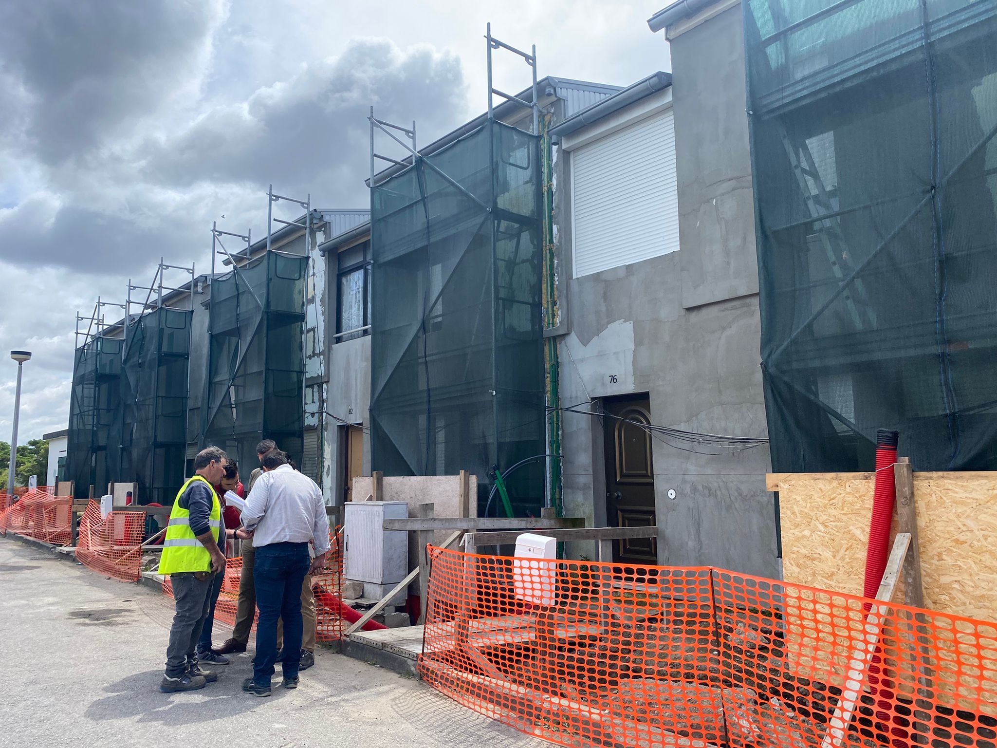 Esta reabilitação visa a beneficiação energética das habitações e a reorganização dos espaços exteriores.